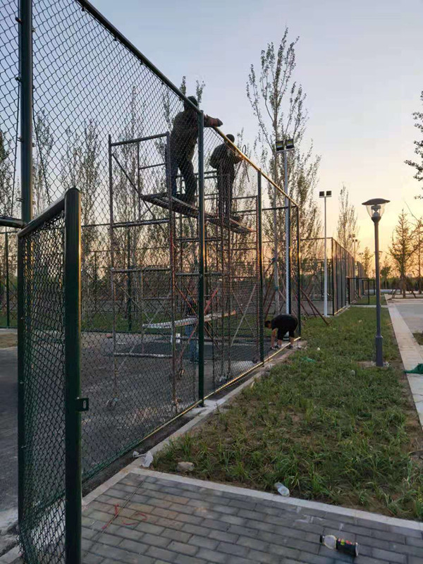籃球場(chǎng)護(hù)欄網(wǎng)的套管裝置,就是立桿的上部和下部?jī)深^焊接出10公分左右的套管,用來插接橫管。固定球場(chǎng)護(hù)欄網(wǎng)的立柱,立柱的裝置方法有底盤,有預(yù)埋的,預(yù)埋的需求現(xiàn)場(chǎng)澆筑混凝土,底盤的裝置方法要求地上有硬化硬化厚度要在10公分。