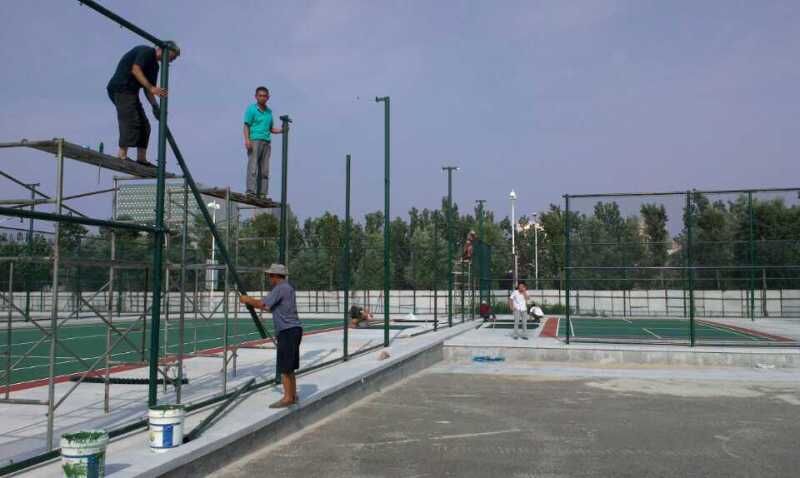 籃球場護欄網安裝細節在護欄網的施工的進程中,一定要準確放樣,對護欄網進行放樣,應畫出其內邊,依據線性進行微調,籃球場護欄網線性順利。一起要留意護欄網的鋼筋安裝,鋼筋的骨架按規劃要求制造,并與梁頂預埋筋銜接,安裝時,應依據放樣點拉線調整鋼筋方位,保護層。